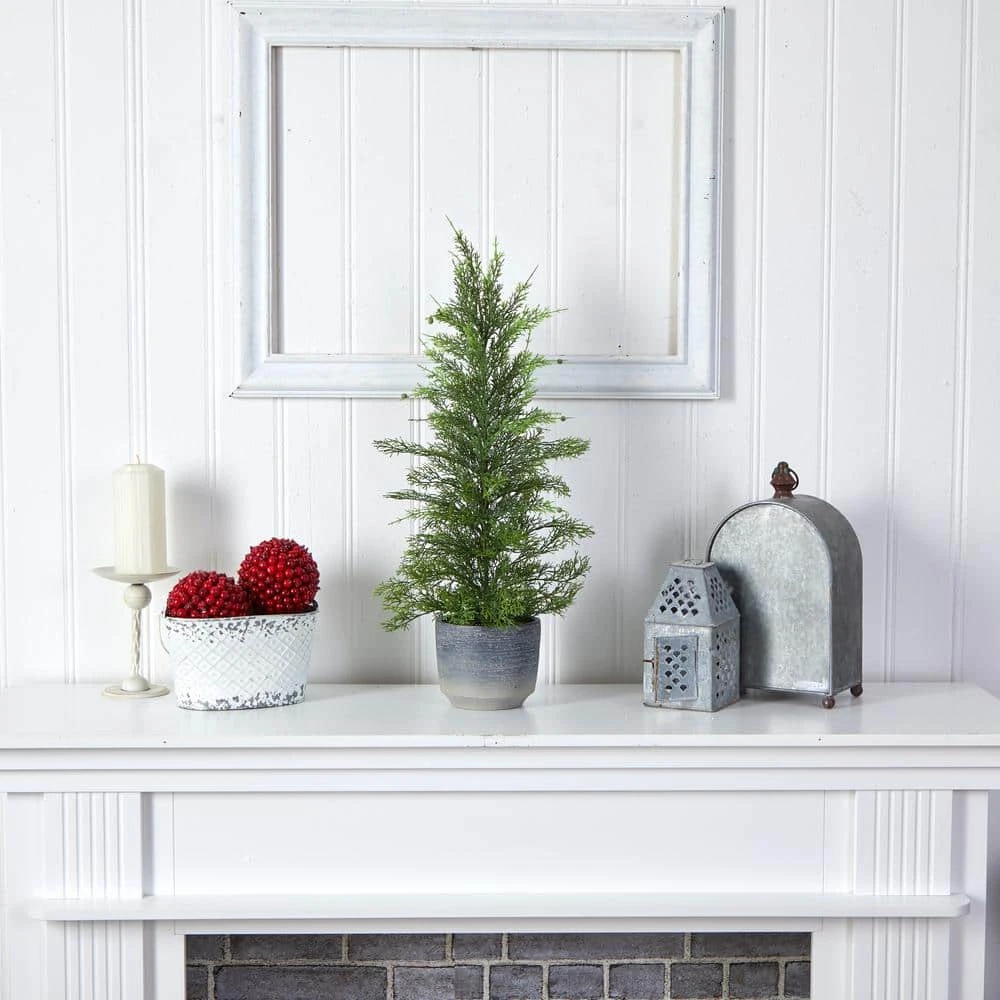 Looking for a great transitional piece. Our Californian cedar artificial tree is perfect for every season. Inspired by the rustic beauty of the west coast, realistic-looking cedar with bendable branches arch upwards, allowing you to shape in your space. Add to any desktop in need of some green; you can even display mini ornaments during the holiday season. Standing 27 in. from a decorative planter (included in height), add to any compact area. Go from spring to the holidays with this piece. Artificial trees are manufactured using synthetic materials, such as polyester material or plastic, and are well designed and constructed to be life-like in appearance. This item will need to be re-shaped when removed from the secure box to allow it to reach its fullest size. Your artificial tree will look beautiful for years to come; simply wipe clean with a soft dry cloth when needed.