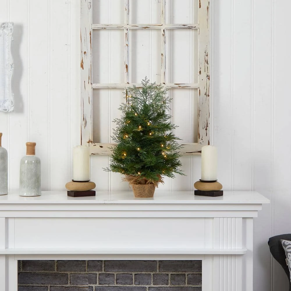 Spread Christmas cheer to compact spaces with this Artificial Christmas Tree. Inspired by nature and crafted from high-quality materials, this mini Christmas tree has lifelike bendable branches, allowing you to shape in your space, and add mini ornaments. To save you time and money, the faux tree comes with 35 warm LED lights for a cozy glow, allowing you to illuminate any space for years to come. Standing 2 ft. from a burlap base (included in height) for a rustic touch, add to any desktop. Perfect for a kids’ room, office or mantel. Best of all? Zero maintenance. . Faux Christmas Trees are manufactured using synthetic materials, such as polyester material or plastic, and are well designed and constructed to be life-like in appearance. This item will need to be re-shaped when removed from the secure box to allow it to reach its fullest size. Your artificial Christmas Tree will look beautiful for years to come; simply wipe clean with a soft dry cloth when needed.