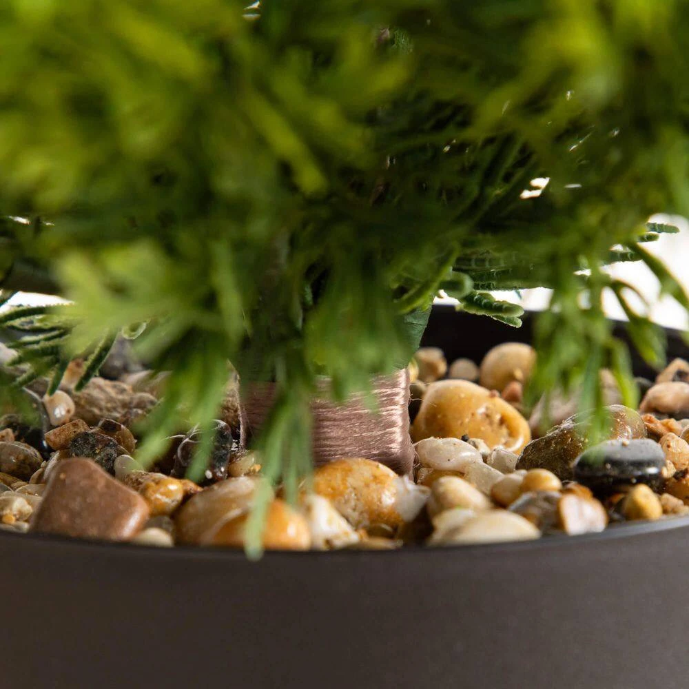 Sometimes you just need a cute little tree for the holidays and this artificial cypress topiary tree does the job. Inspired by the classic Christmas tree, this compact topiary brings festive charm without overwhelming your space. Crafted from high-quality materials, it provides lush, green and festive joy to compact spaces and looks great with or without ornaments. Standing 3 ft. from a planter with river rocks, it’s ready to shine. Group several for a woodland display and add to a decorative planter if you’d like.