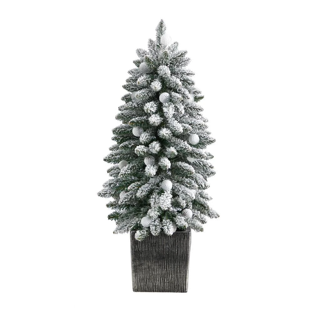 Show your true colors during Christmas with this flocked artificial Christmas tree. Inspired by nature, this robust silhouette mimics the real natural foliage and texture found in their European counterparts with snow in the easy-to-bend branches. Arriving pre-strung with 20 LED lights, illuminate your space with disco ball like lights, that bring a colorful addition to the holidays. Standing 3 ft. from a decorative planter, feel free to add in any compact area in need of Christmas cheer. This is a favorite among kids that love bright colors. Faux Christmas Trees are manufactured using synthetic materials, such as polyester material or plastic and are well designed and constructed to be life-like in appearance. This item will need to be re-shaped when removed from the secure box to allow it to reach its fullest size. Your artificial Christmas Tree will look beautiful for years to come, simply wipe clean with a soft dry cloth when needed.