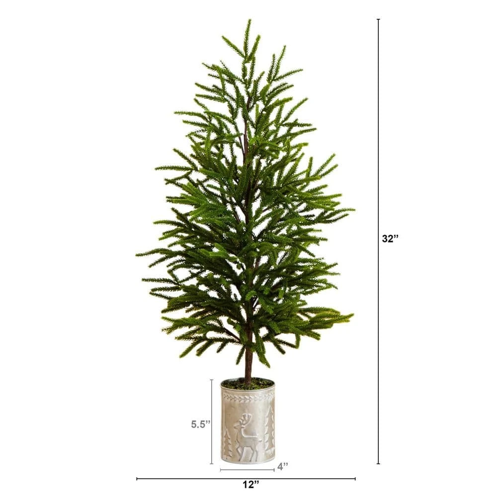 The artificial Norfolk pine transports you to an oasis of green, a perpetual forest of Christmas. Inspired by the classic holiday trees, you know and love, this piece combines the classic with the trendy as tiers of lush branches descend from a slim brown trunk. Crafted from high-quality materials, you’ll notice the attention to detail in its natural look and real touch branches. Feel free to bend the branches to fit in your space. Standing 32 in. from a Christmas-inspired decorative planter with faux moss, add to any area in need of some life during the holidays. Showcase your favorite ornaments or lights for a truly special centerpiece.