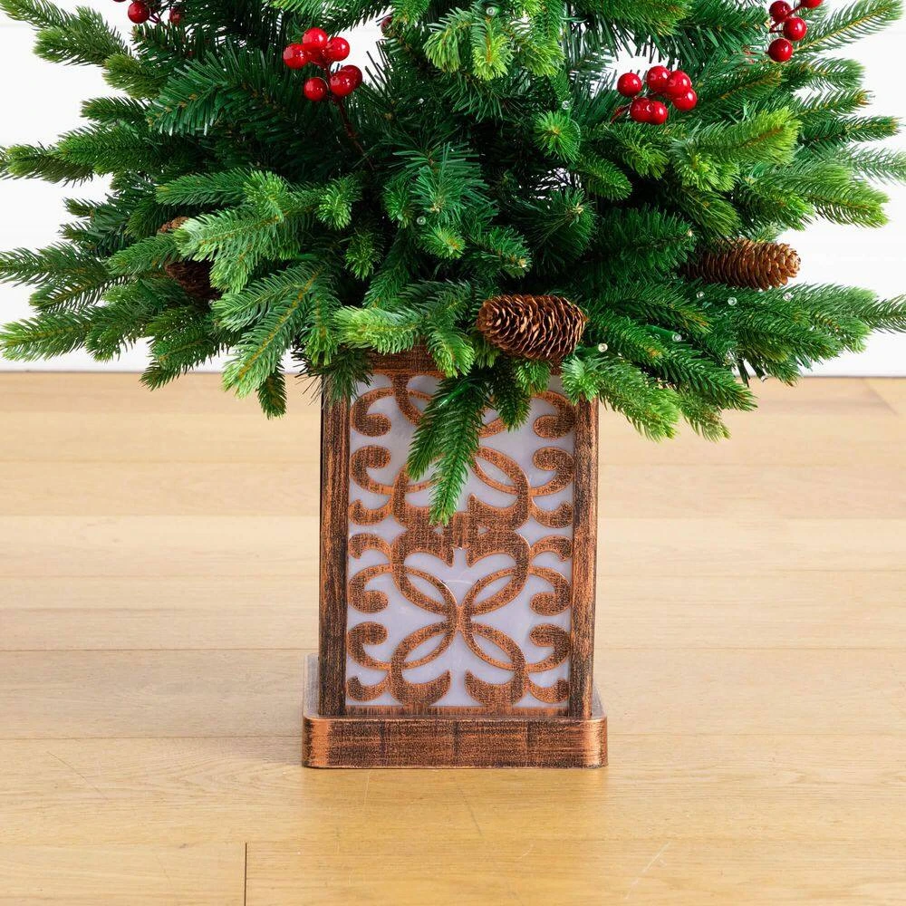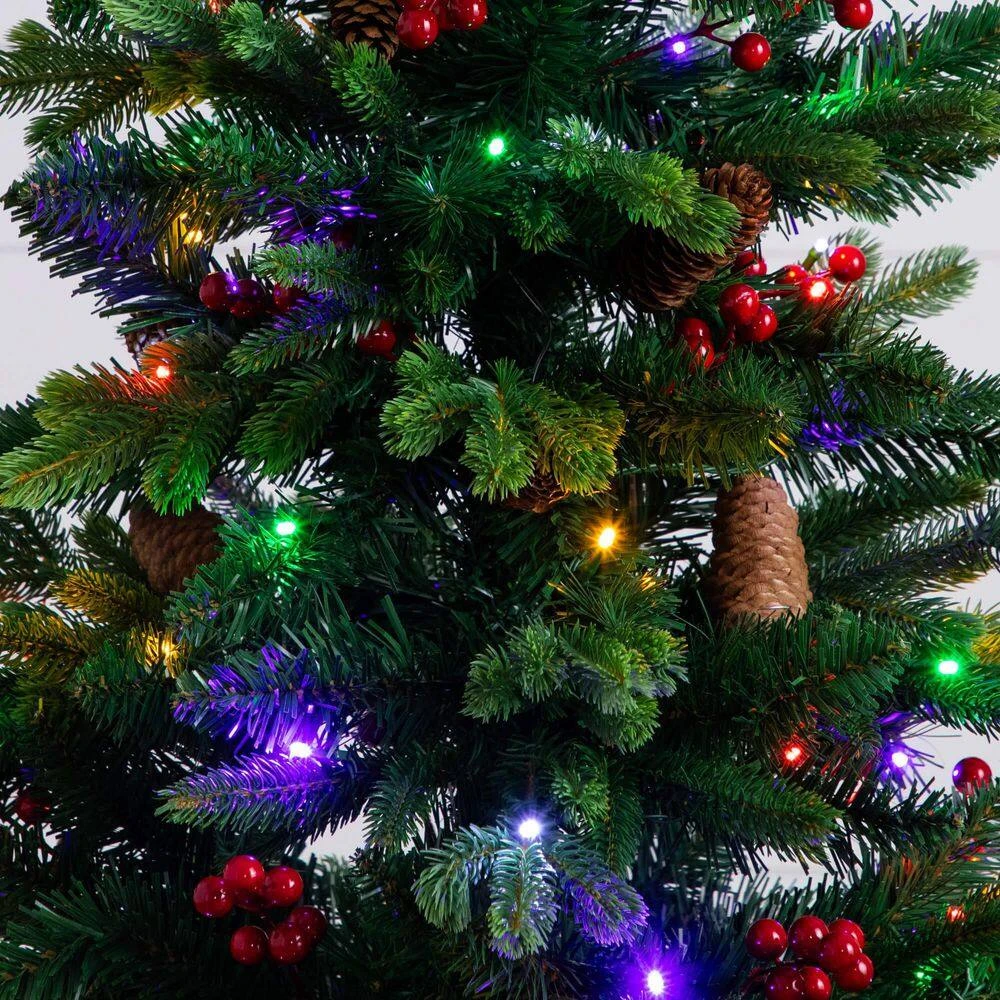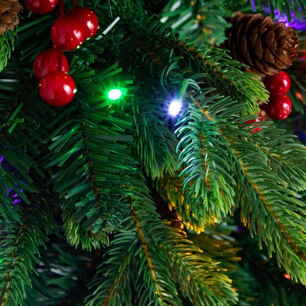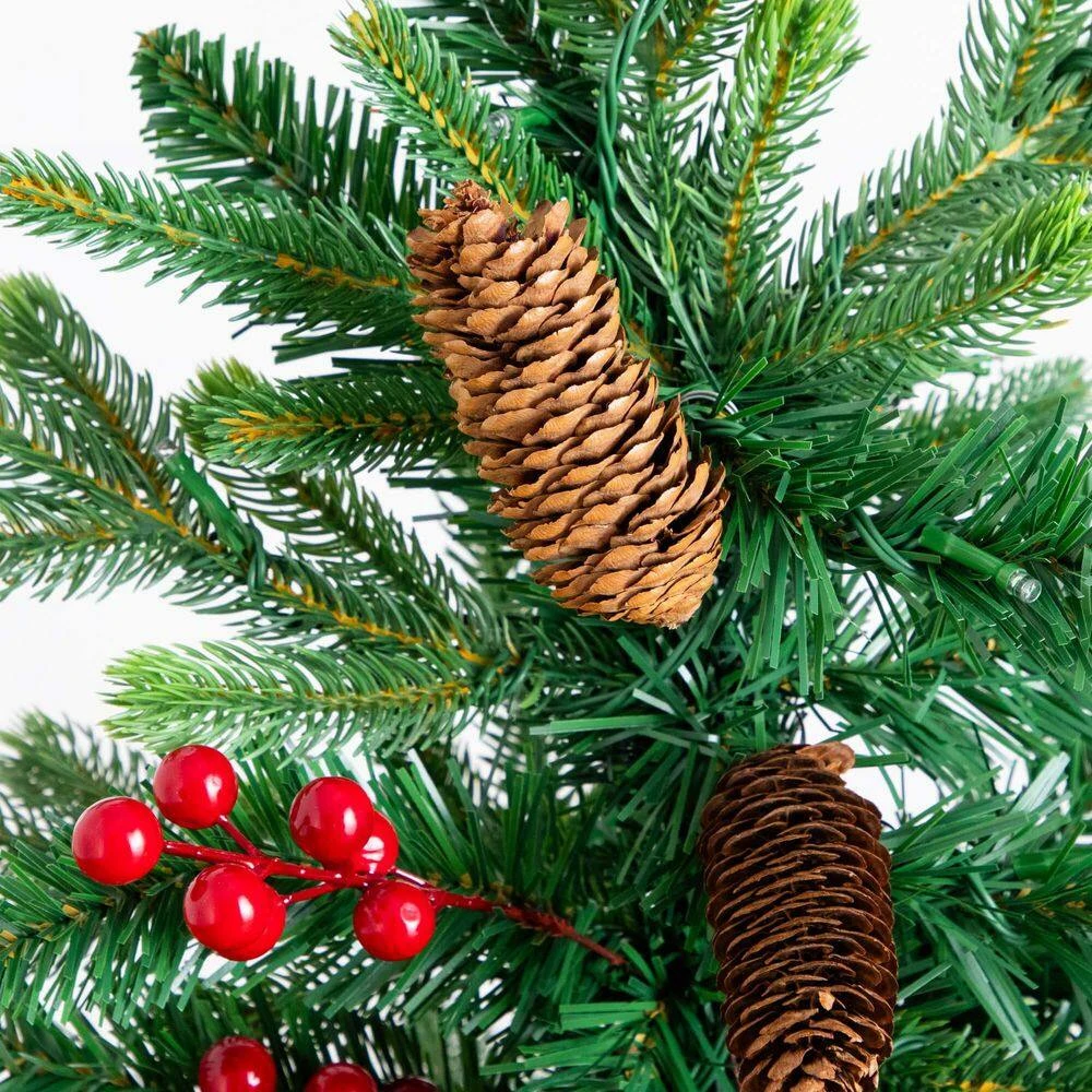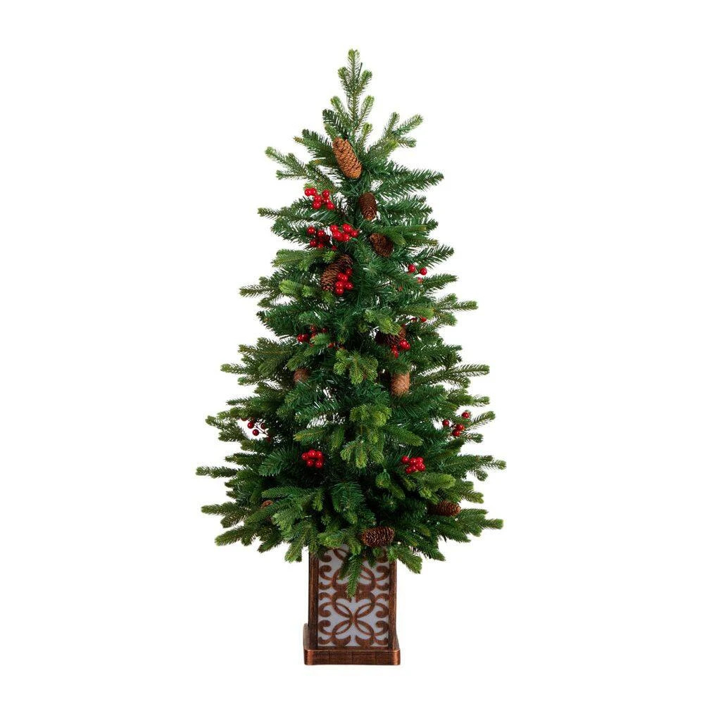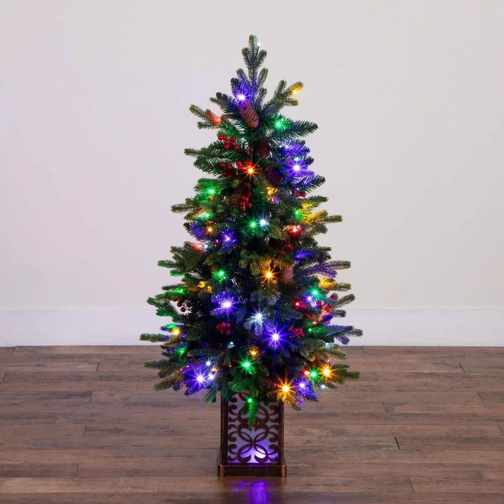 Add a touch of festive magic to your space with this artificial Christmas tree. Adorned with 100 vibrant multicolored LED lights, natural looking pinecones, and bright red berries, this beautifully crafted tree brings a cozy holiday ambiance to any setting. Its lush, full, and bendable branches provide ample space for your favorite holiday ornaments, while nestled in a decorative planter base adds an elegant touch of sophistication. Whether placed in an entryway or living room, this 4 ft. tree is the perfect way to create a warm and inviting Christmas atmosphere and will transform your holiday decor with its seasonal cheer, year after year.