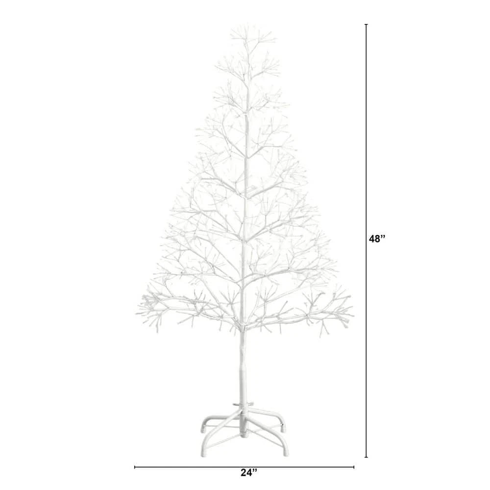 Illuminate your space with an enchanting glow using this artificial white starburst tree, a mesmerizing fusion of elegance and seasonal charm. This luminous masterpiece radiates ethereal beauty, featuring 800 warm white fairy LED lights intricately woven through delicate copper wire, shimmering like a constellation of tiny stars. Whether casting a hauntingly beautiful glow for Halloween or evoking the magic of a starlit holiday night, this tree’s captivating radiance enhances any space. With 8 lighting functions, it allows you to effortlessly tailor the glow to suit your desired ambiance. Standing 4 ft. tall and set upon a sleek metallic base, this dazzling tree blends modern artistry with timeless festive allure, making it a statement piece for any celebration.