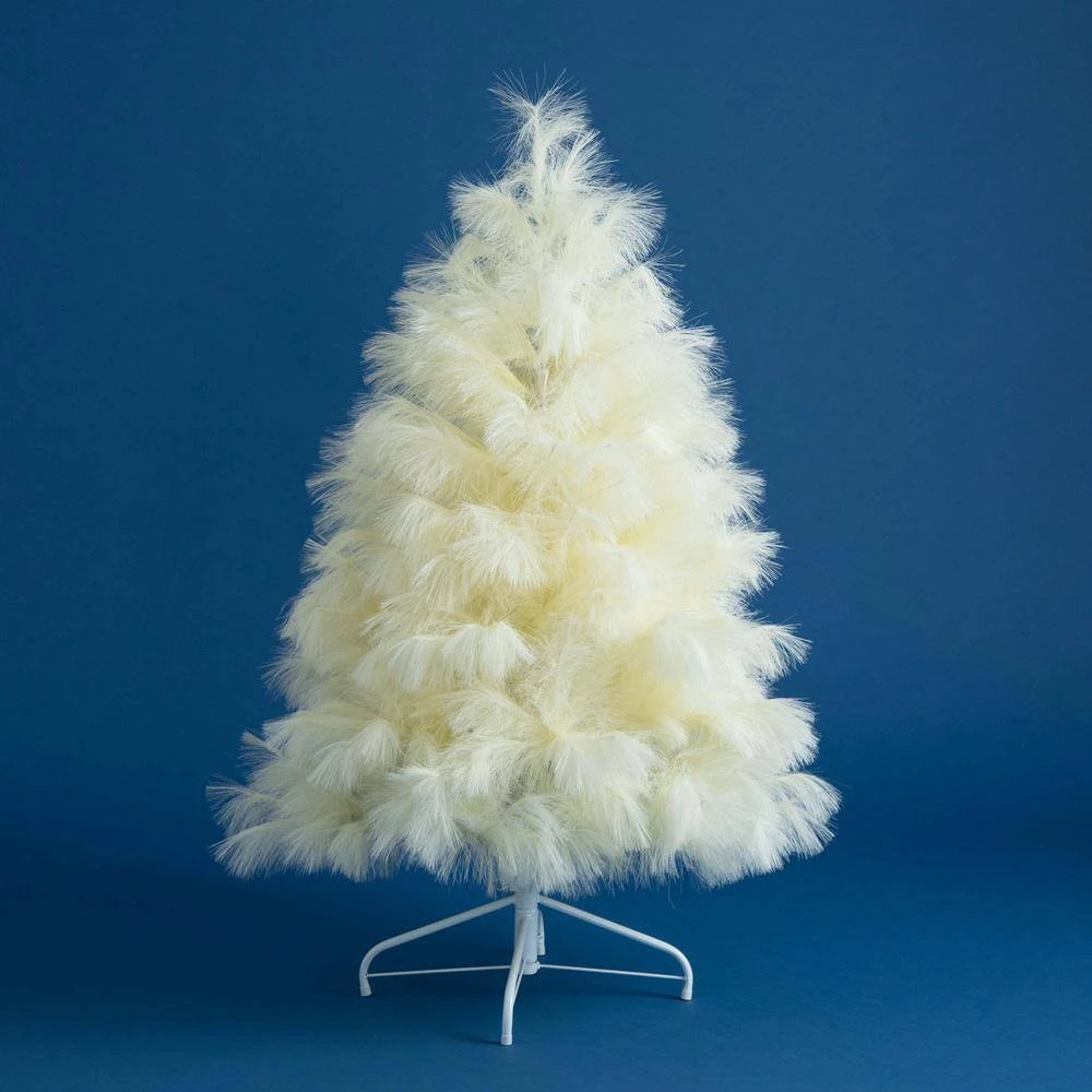 Meet the new game-changing, innovative artificial Christmas tree that you and your guests have never seen before. The off-white pampas Christmas tree is sure to be the topic of conversation at your next get-together. Inspired by the dreamy meadows in France, it features soft, pillow-like feathers that bring you closer to nature. Tap into your soft era for an elevated and unique holiday season. Standing 4 ft. tall on a sturdy stand, it can be displayed in any area of your choice. This tree requires no maintenance or decorations-it shines on its own. A truly jaw-dropping piece that stands out from the bunch.