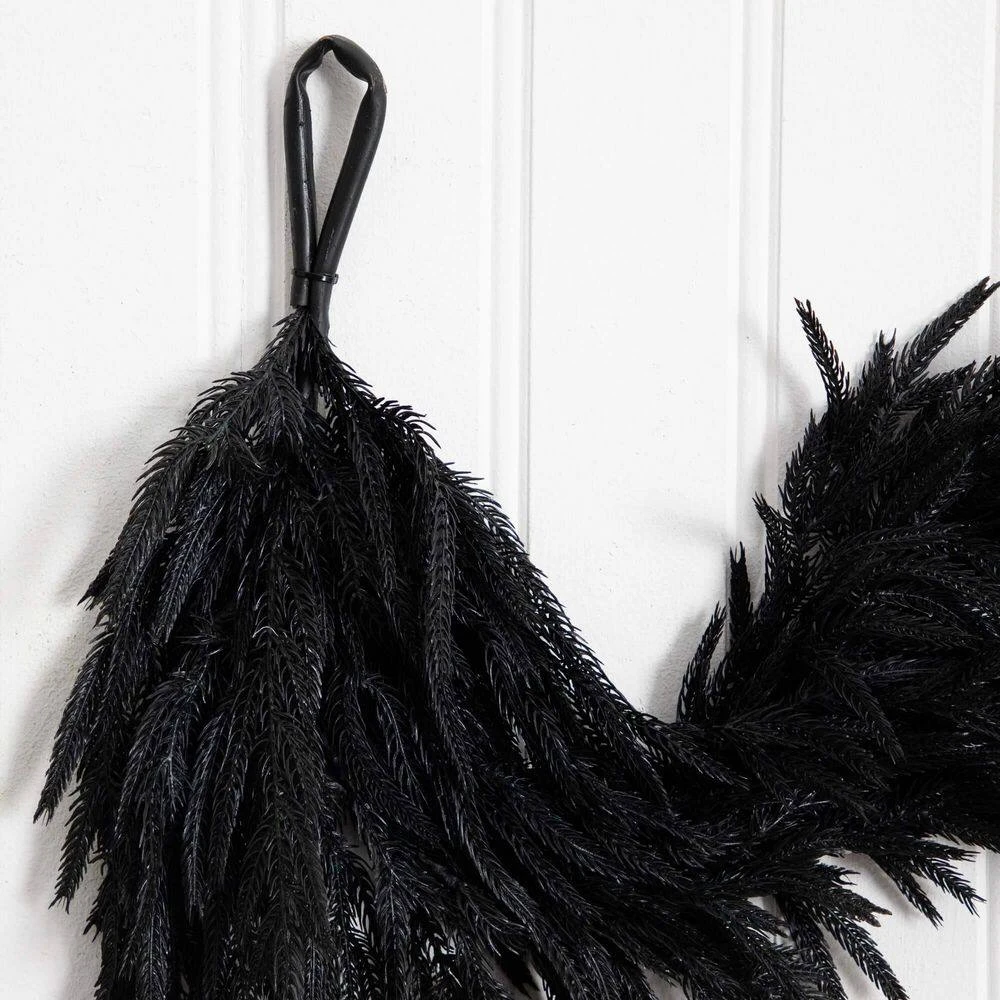 Looking for a spooky yet soft accent during the harvest season? Then you need the artificial Halloween black Norfolk island pine garland. Inspired by the traditional pine that you know and love but updated with a haunting twist, this striking noir garland brings dramatic flair to your Halloween and autumn decor. This sophisticated garland transforms spaces into a bewitching Halloween. Crafted from high-quality materials you’ll notice the attention to detail in its natural look and real touch branches. Bend and shape the lush branches to fit in your space. With a length of 4-Ft, accent spaces such as mantels, doorways or staircases. Sprinkle some pumpkins, lights or other decor pieces for an elevated look.