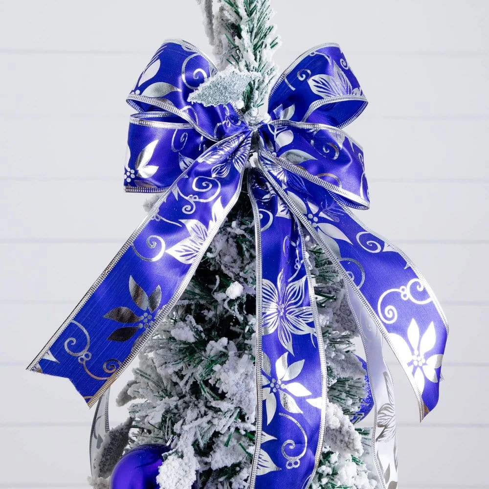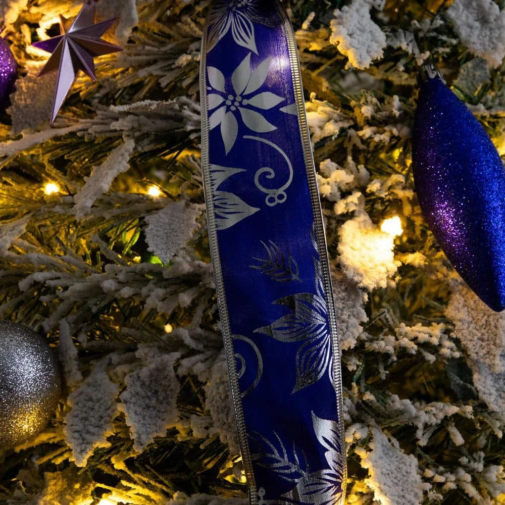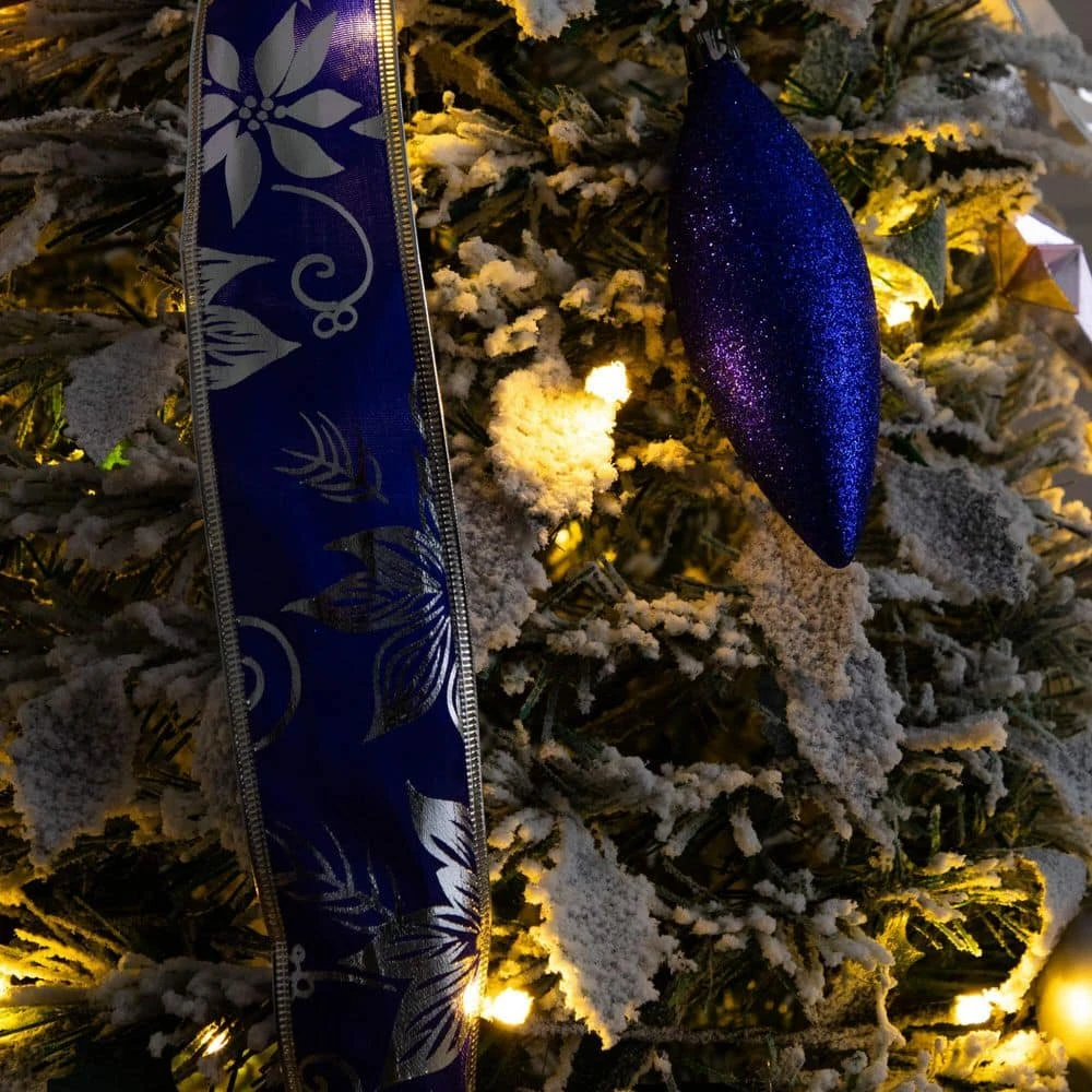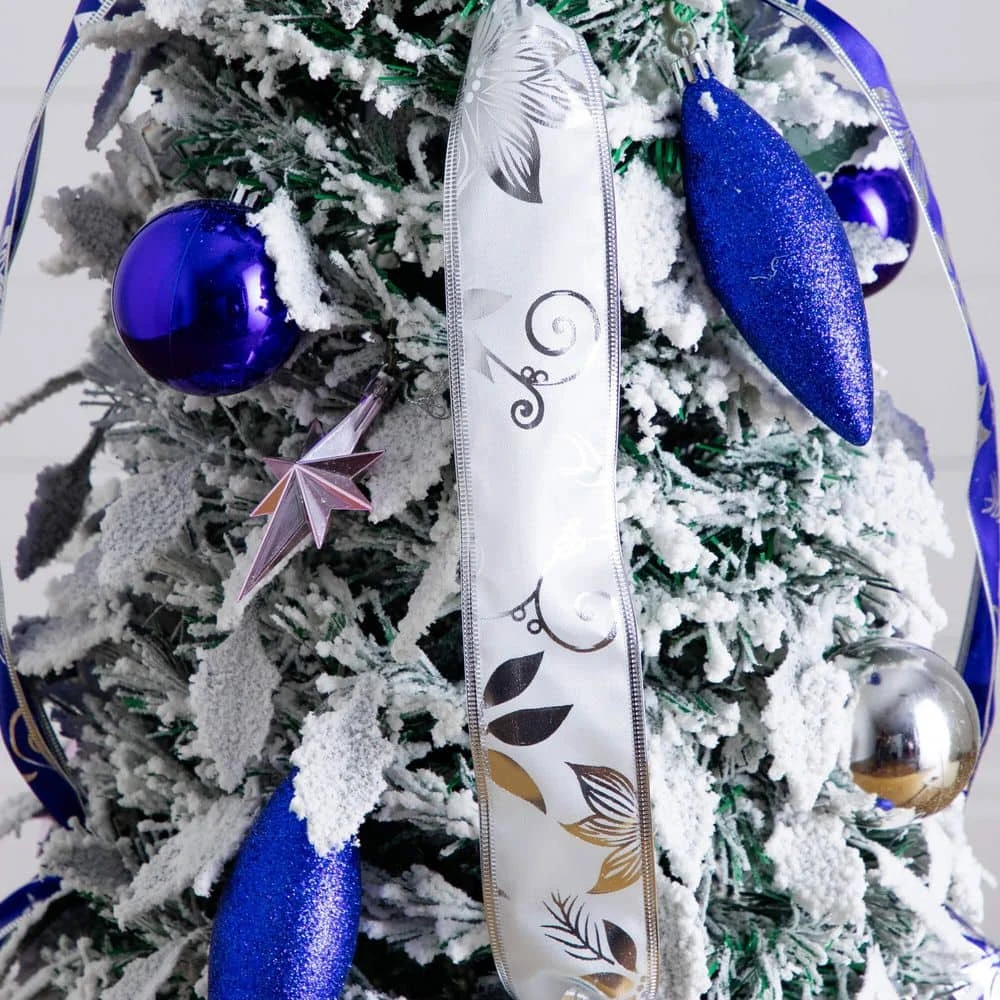 - Come pre-lit with 100 warm white LED lights and pre-decorated with silver and blue ornaments and ribbons
