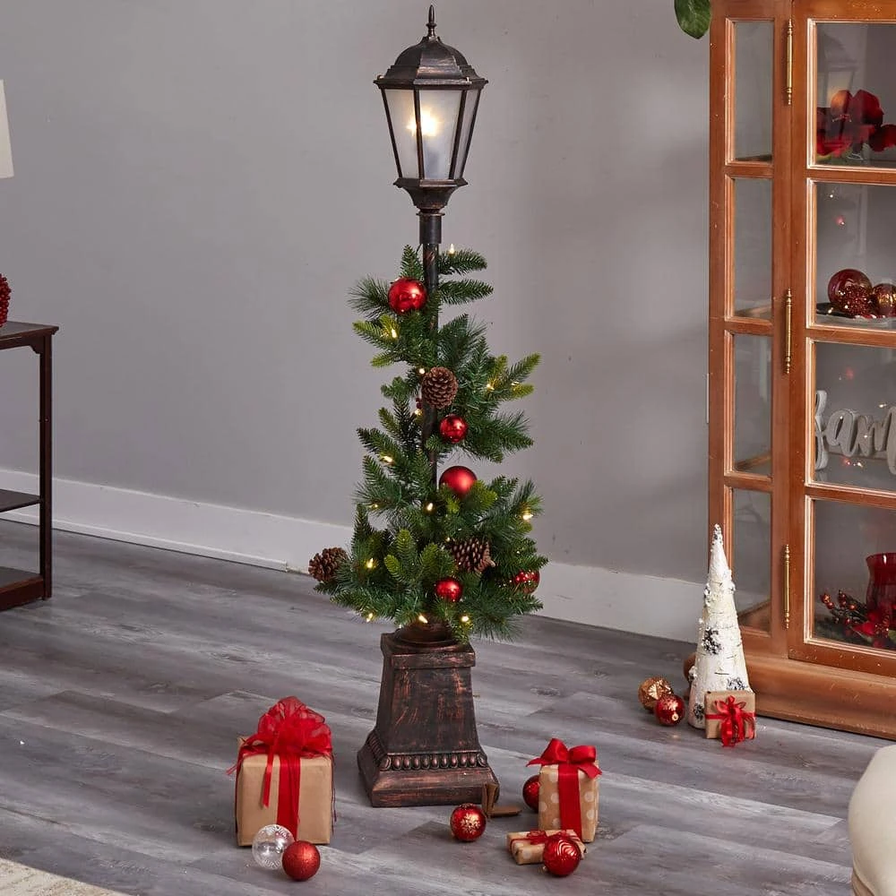Dreaming of a fairy tale inspired Christmas. Make your holiday season a bit brighter by adding a lamp post that’ll transport you to any holiday movie. Constructed from iron and in a sleek black finish, illuminate any area with the 50 LED lights. For a festive touch, a handcrafted evergreen Christmas artificial garland with 180 tips, pinecones and holiday ornaments adorn the thin silhouette and allow you to add your own ornaments. With a height of 5 ft. add to any bare corner of your space in need of some Christmas cheer.