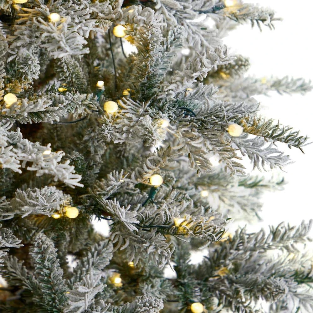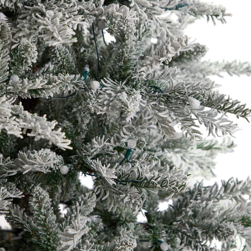 Create your own White Christmas this holiday season with the help of this flocked artificial Christmas tree. Completely maintenance-free, this winter-inspired fake Christmas tree boasts various tiers of soft looking foliage made up of 1061 easy-to-bend branch tips for accenting with your own personalized ornaments and holiday accents and finished with a light dusting of faux snow to evoke a winter setting. Arriving pre-strung with 500 LED lights to eliminate tangles and carefully stabilized on a metal stand, this enchanting 8.5 ft. tall frosted artificial Christmas tree will not only make holiday decorating a breeze but ensure your home is always holiday-dressed for years to come. Faux Christmas Trees are manufactured using synthetic materials, such as polyester material or plastic, and are well designed and constructed to be life-like in appearance. This item will need to be re-shaped when removed from the secure box to allow it to reach its fullest size. Your artificial Christmas Tree will look beautiful for years to come; simply wipe clean with a soft dry cloth when needed.