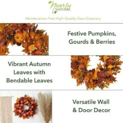 24 In. Fall Pumpkins, Pine Cones And Berries Artificial Wreath