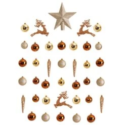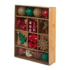 Get into the holly jolly spirit this holiday season with an easy, go-to set of shatterproof Christmas tree ornaments. Perfect for accenting and filling in bare spaces in Christmas trees, this set of 52 (80 mm to 150 mm) holiday-inspired ornaments comes in bright hues and seasonal motifs, each reflecting a glass-like quality – without the fear of damage should they fall or drop. Arriving in a reusable tray for safe-keeping and storage, they’re perfect for mixing and matching with other similar colors and themes.