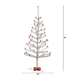 4 Ft. Artificial Retro Silver Tinsel Christmas Tree With 50-Red Mini Ornament Balls And Wooden Base