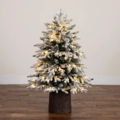 4 Ft. Pre-lit Flocked Rock Springs Spruce Artificial Christmas Tree With 100 Clear LED Lights