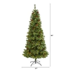 7 Ft. Pre-Lit White Mountain Pine Artificial Christmas Tree With 400 Clear LED Lights And Pine Cones
