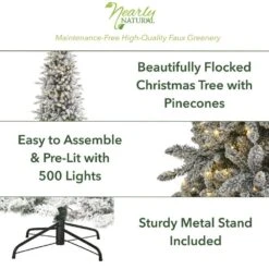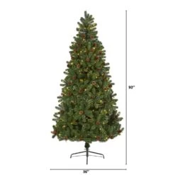 7.5 Ft. Pre-Lit Yukon Mountain Fir Artificial Christmas Tree With 600 Clear Lights, Pine Cones