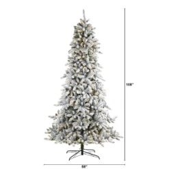 9 Ft. Pre-Lit LED Slim Flocked Montreal Fir Artificial Christmas Tree With 600 Warm White Lights