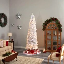 9 Ft. White Pre-Lit LED Slim Artificial Christmas Tree With 600 Warm White Lights