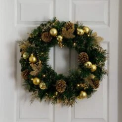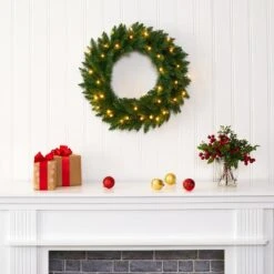 24 In. Pre-Lit Flocked Artificial Christmas Wreath With 50 LED Lights